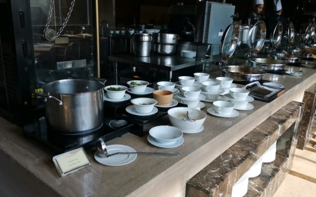朝食のレストランはデザートを含め品数が多く、特に目の前で手打ちしたメンで作るヌードルの味は絶品でした。
