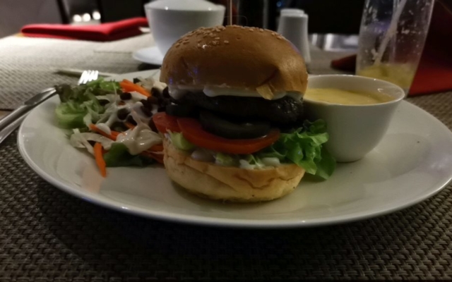 そ~たろはこちらで夕食を取ったのですが、ハンバーガーと飲み物を頼んで、サービス料金・税込みで1,400円といったところでした。